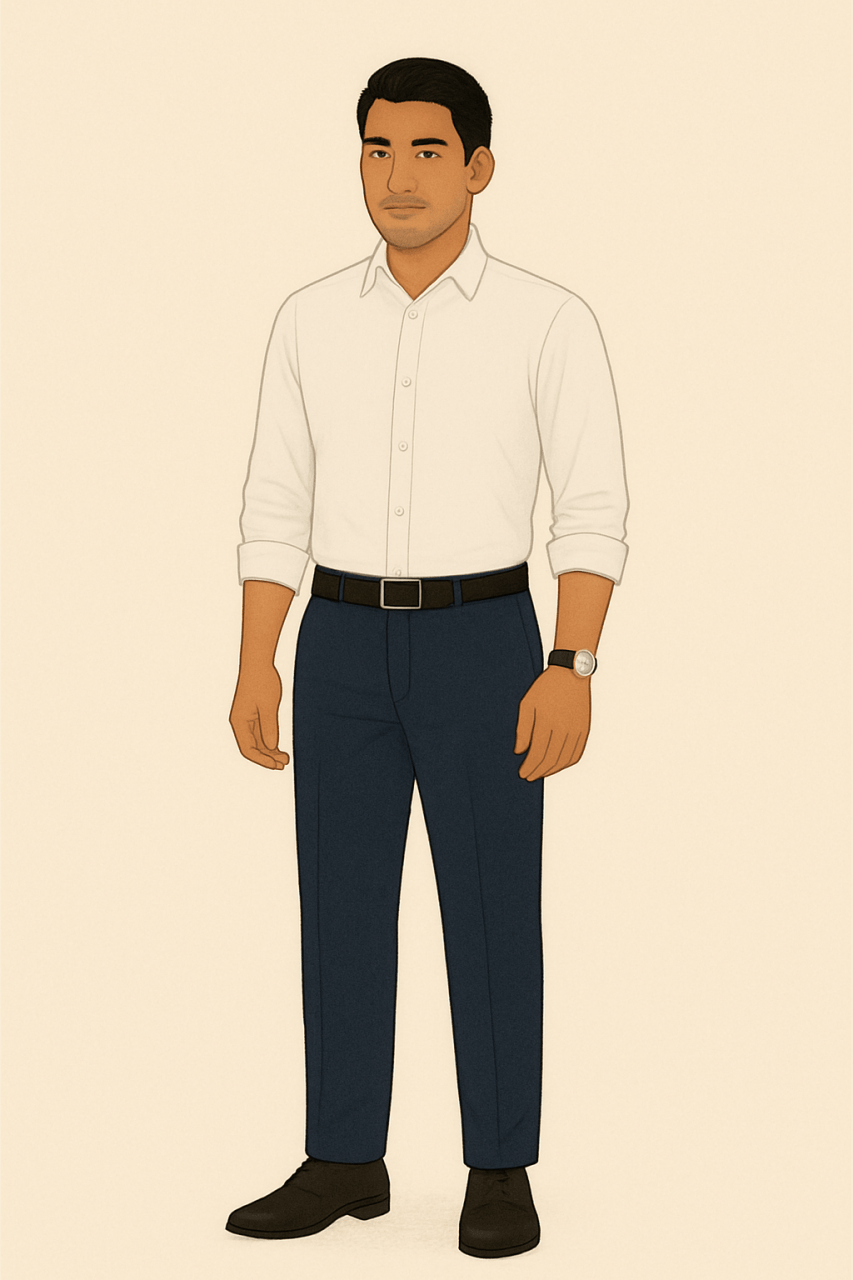 Calça social com camisa de botão: Uma opção mais leve para quem não quiser usar o terno completo. .